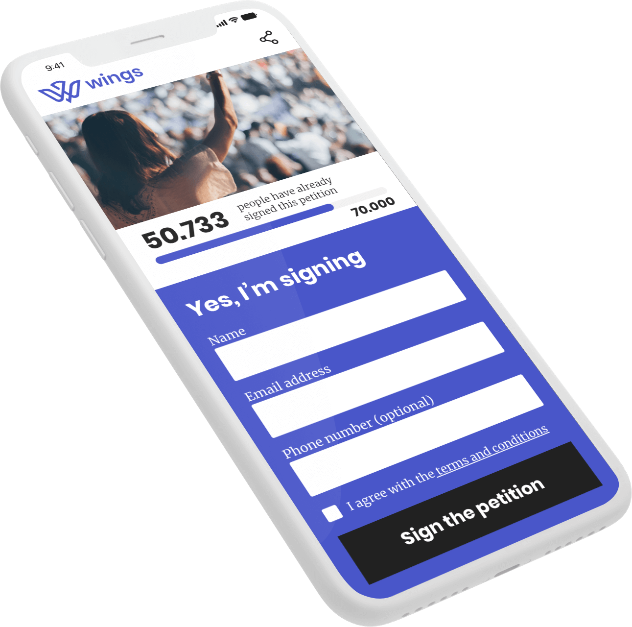 Wings is a proven platform that has been used by green, social-democratic and socialist parties, labour unions, citizen action groups and non-governmental organizations to process millions of signups, signatures and donations. Take a look at some examples.