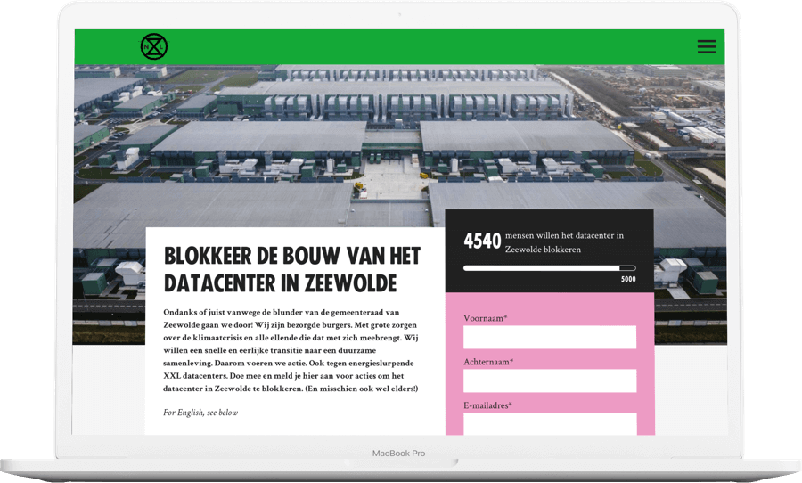 A coalition campaign led by Extinction Rebellion to protest the construction of an enormous datacenter by META / Facebook in the Dutch countryside.